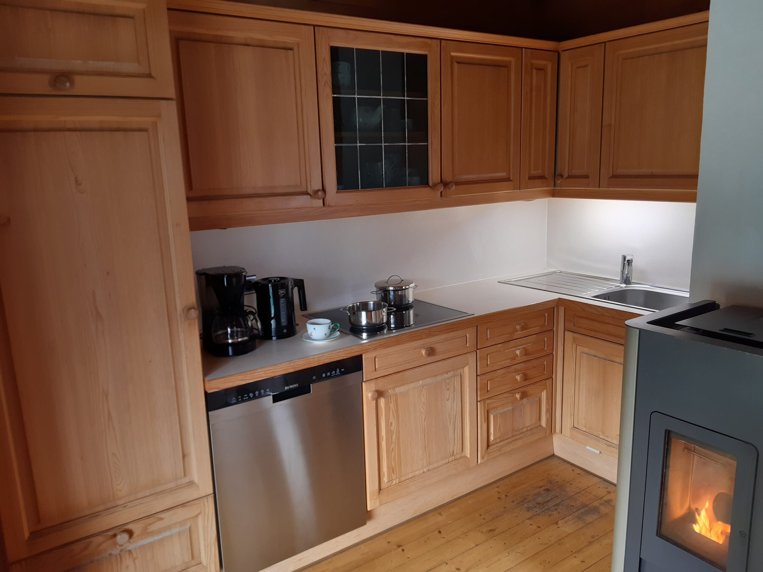 Het chalet is volledig ingericht met o.a. een koelkast met vriesvak, combimagnetron, inductiekookplaat, koffiezetapparaat, stofzuiger, vaatwasser, wasmachine, BBQ, smart TV en wifi.